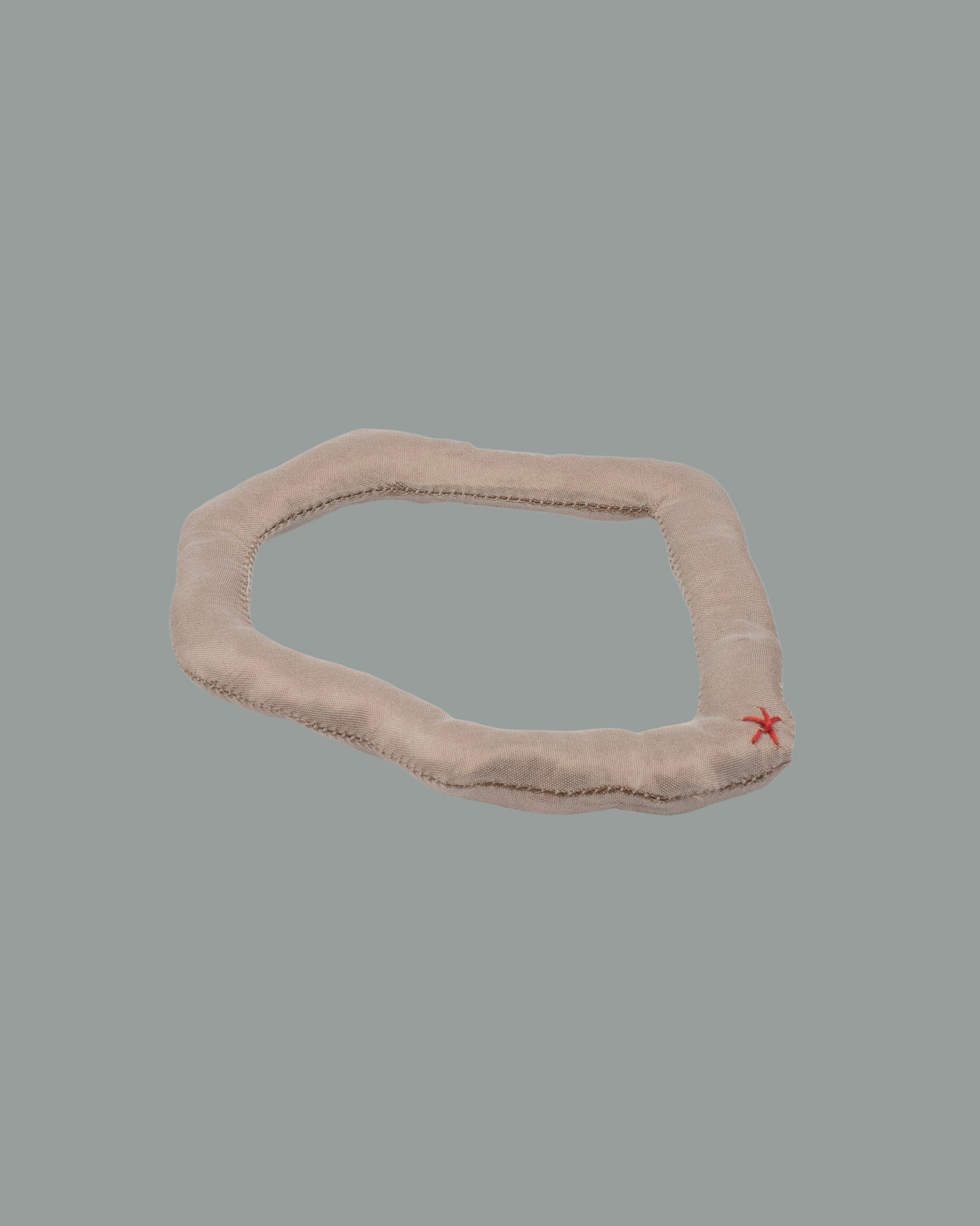 ファッションブランドならではの視点でデザインされたシルクのブレスレットは、柔らかく有機的なフォルムで手元にアートピースのような存在感をもたらし、ナチュラルな色調が、装いに明るい余白を加えます。