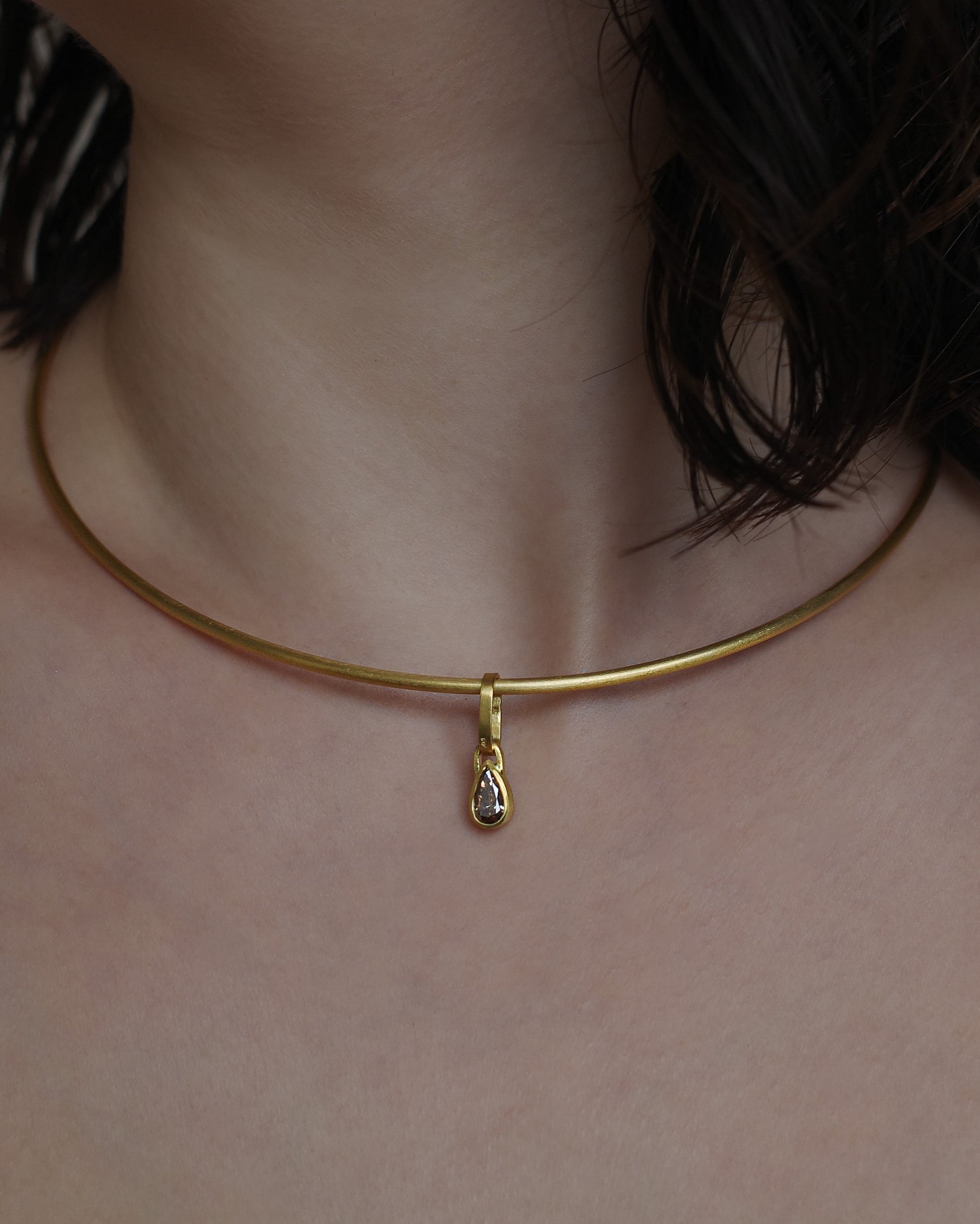 This pendant features an antique pear-shaped brown diamond set in 18K Fairmined gold. Each piece is individually handcrafted in Los Angeles by master goldsmiths.