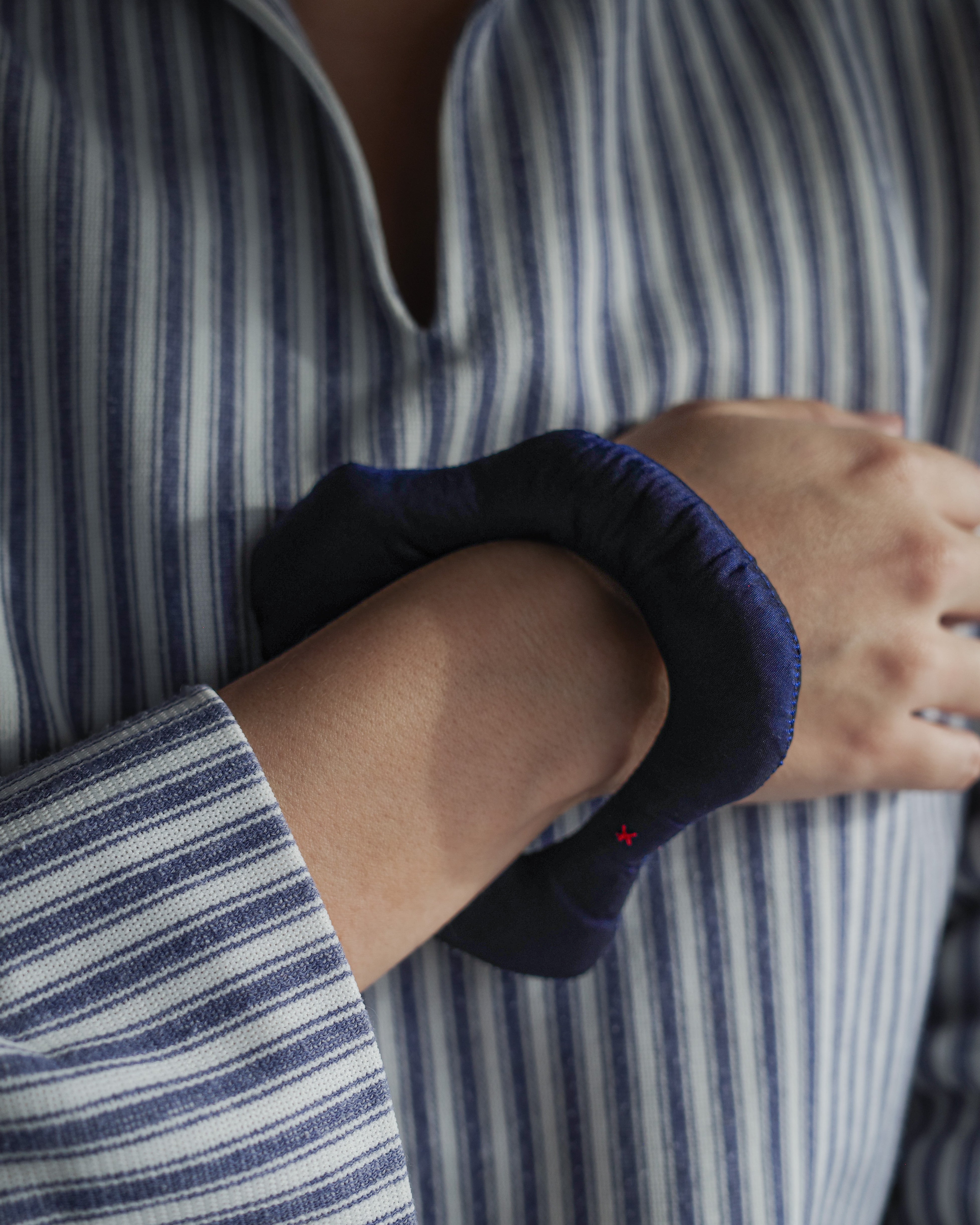 Designed from a fashion brand’s unique perspective, this silk bracelet features a soft, organic form that brings an artful presence to the wrist. The rich shade of China blue adds a refined and graceful touch to any ensemble.