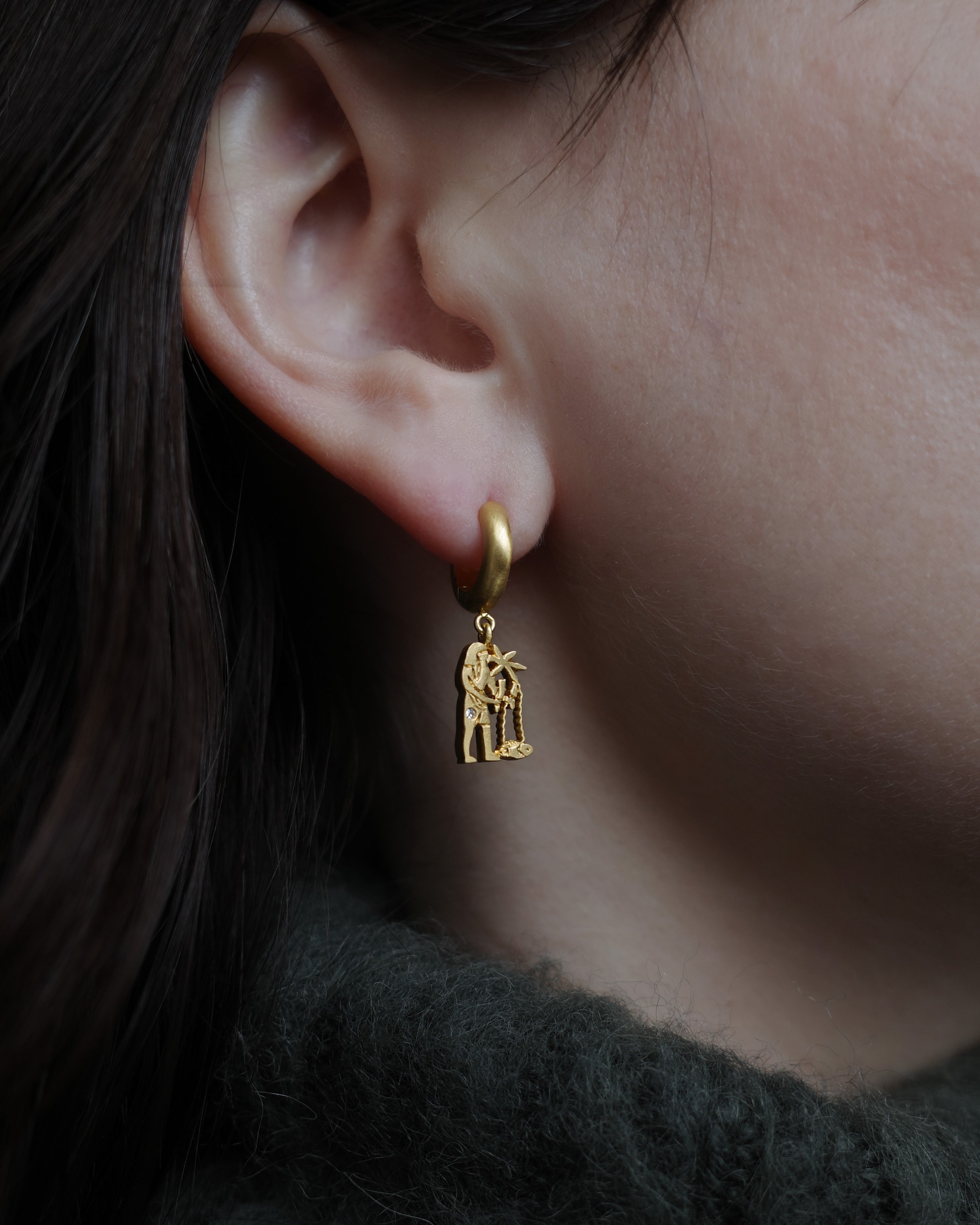 Inspired by the zodiac reliefs found in the Osiris Chapel of the Temple of Dendera in ancient Egypt, these earrings reimagine the brand’s signature zodiac design in miniature form.