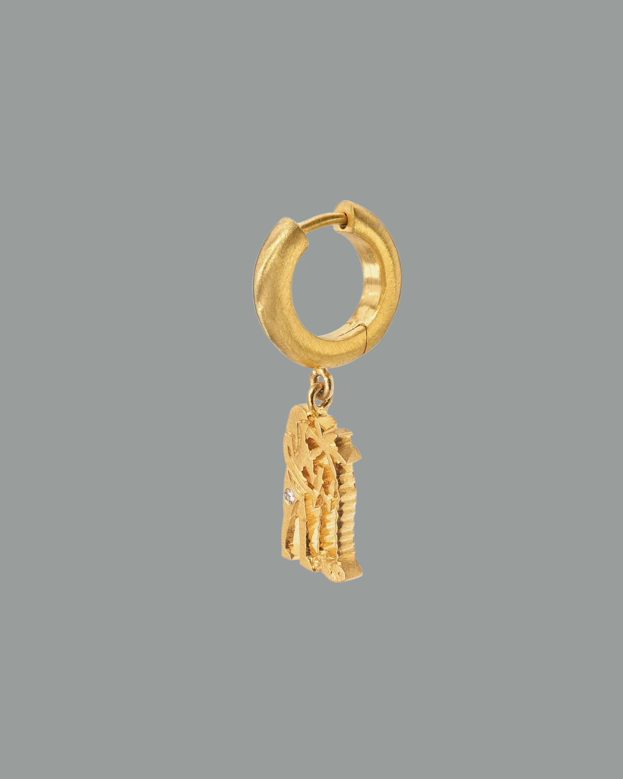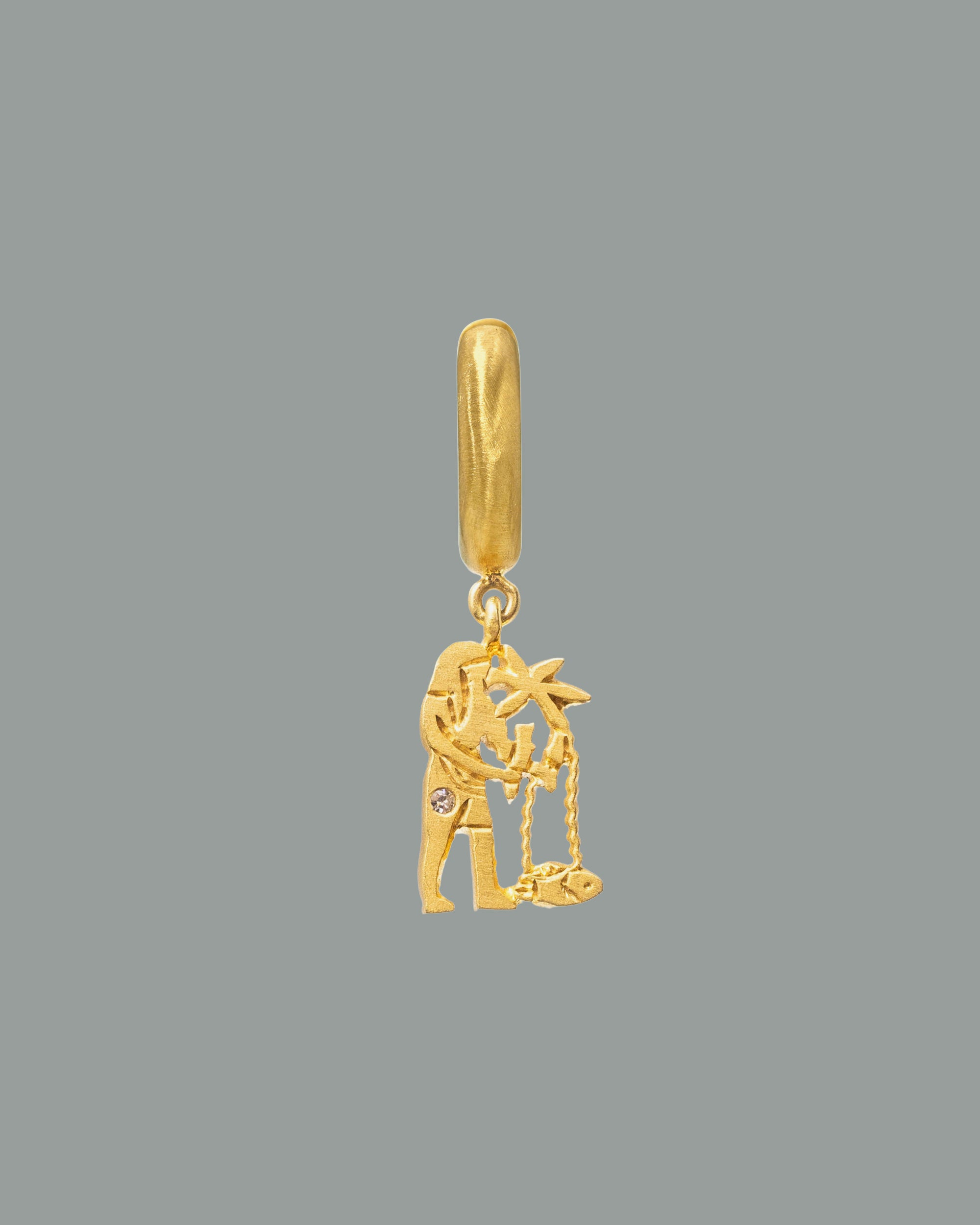 Mini Dendera Zodiac Charm Signature Hoop -Aquarius