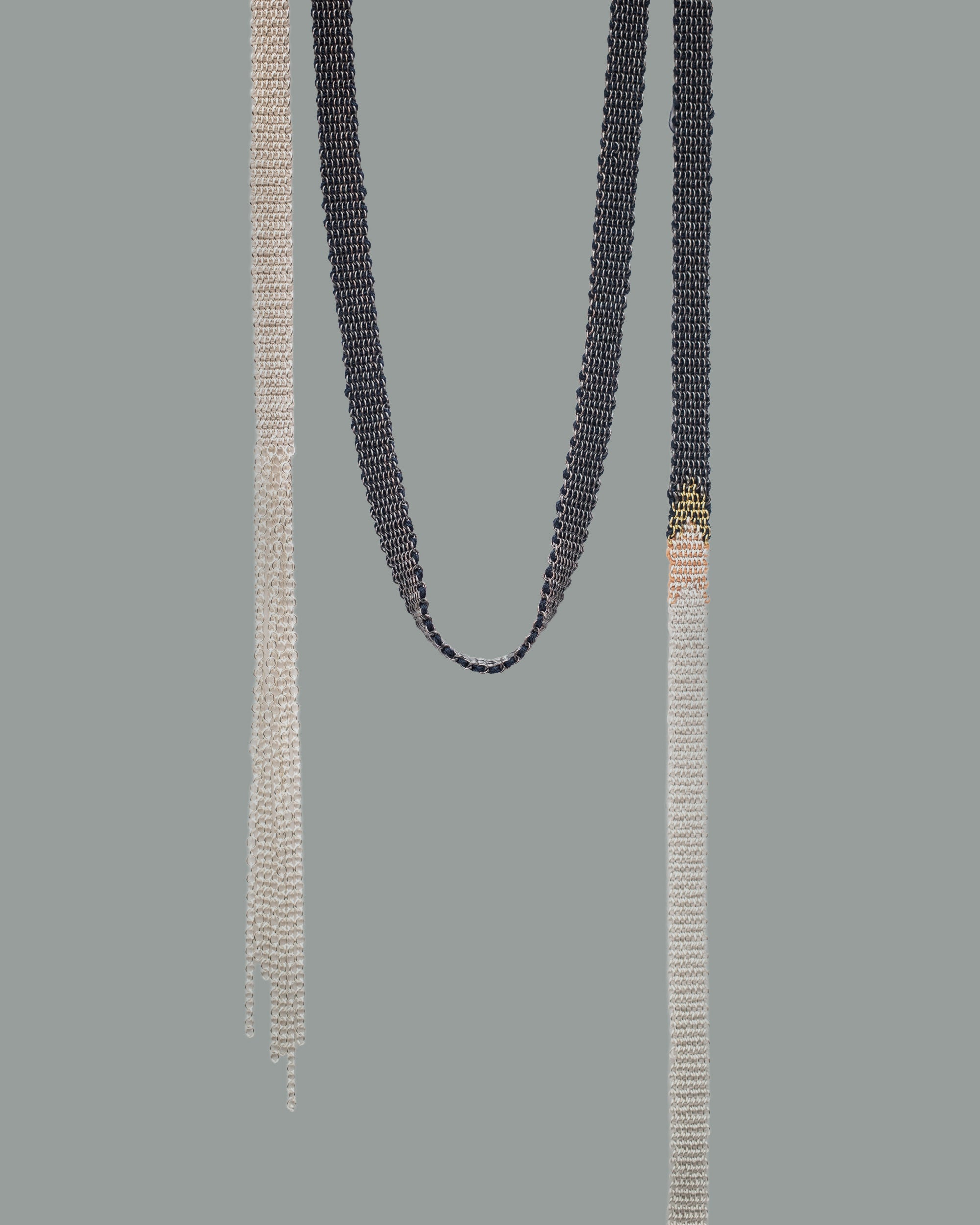 17 Stephanie Schneider brings a touch of elegance to her jewelry creations by blending luxurious textiles like mohair, silk, and linen with shimmering metals such as silver.