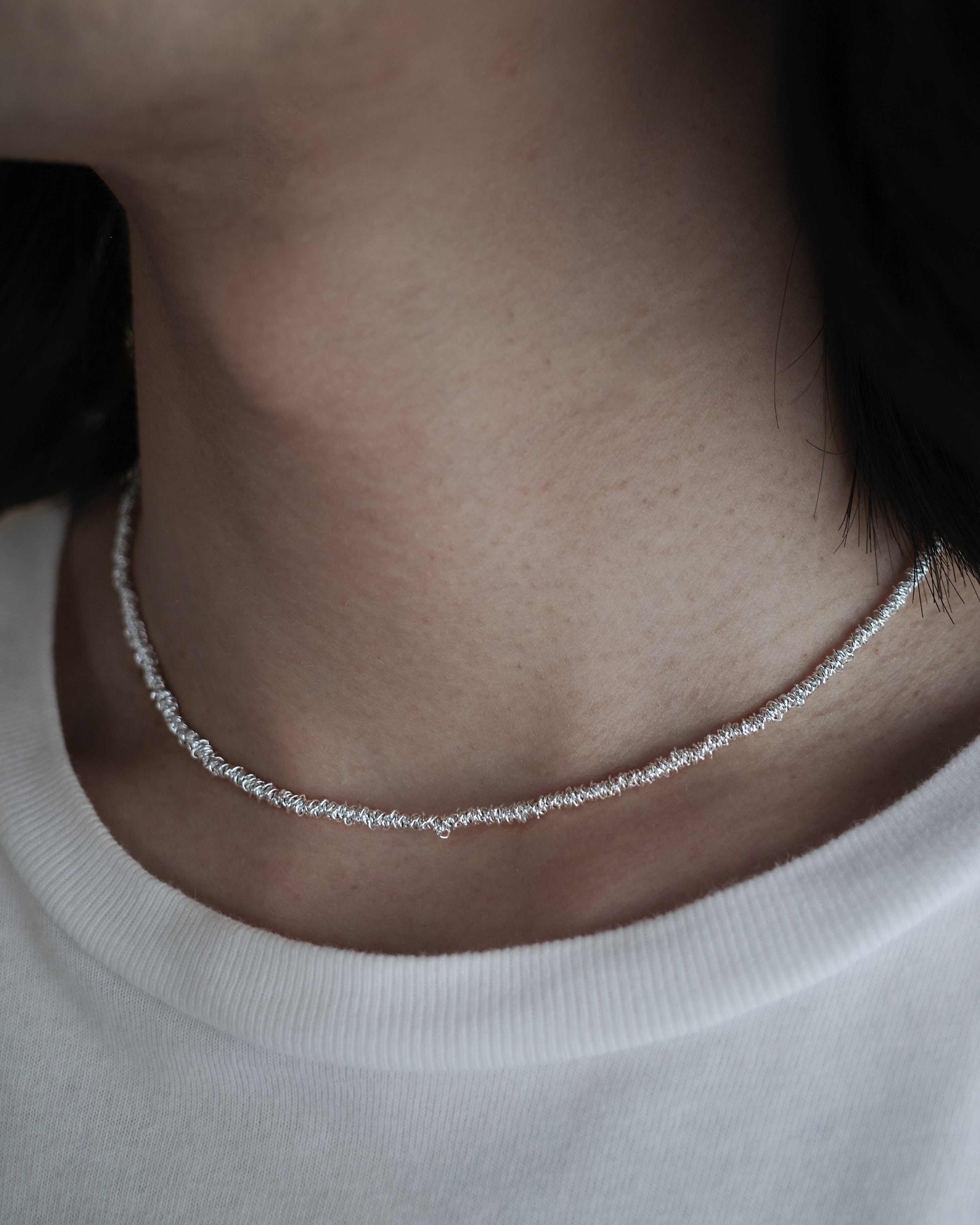 This string necklace is meticulously crafted using traditional artisanal techniques, displaying a refined shimmer.